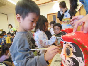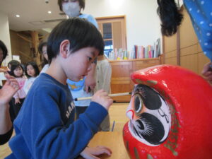 12月26日(金)に一年間健康に過ごせた感謝の気持ちを込め、だるまの目入れを行いました。