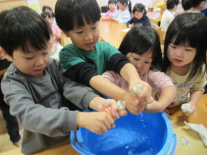 「ここもよごれてるね」「ここもきれいにしよう」と子ども達でみんなで