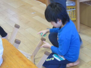 一年間お世話になった保育室や自分の引き出し、椅子の裏など様々な場所を綺麗に掃除してくれました。