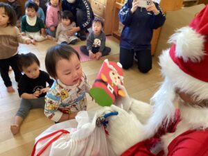 「サンタさんだー!」「まってたよー」と大興奮な子どもたち。