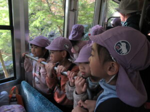 11月7日(金)道組(5歳児)が高尾山登山遠足に行きました。ケーブルカーに乗り、薬王院、そして頂上まで歩いて登りました。頂上ではきれいな富士山の見ることができました。